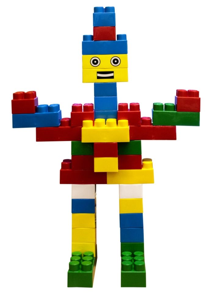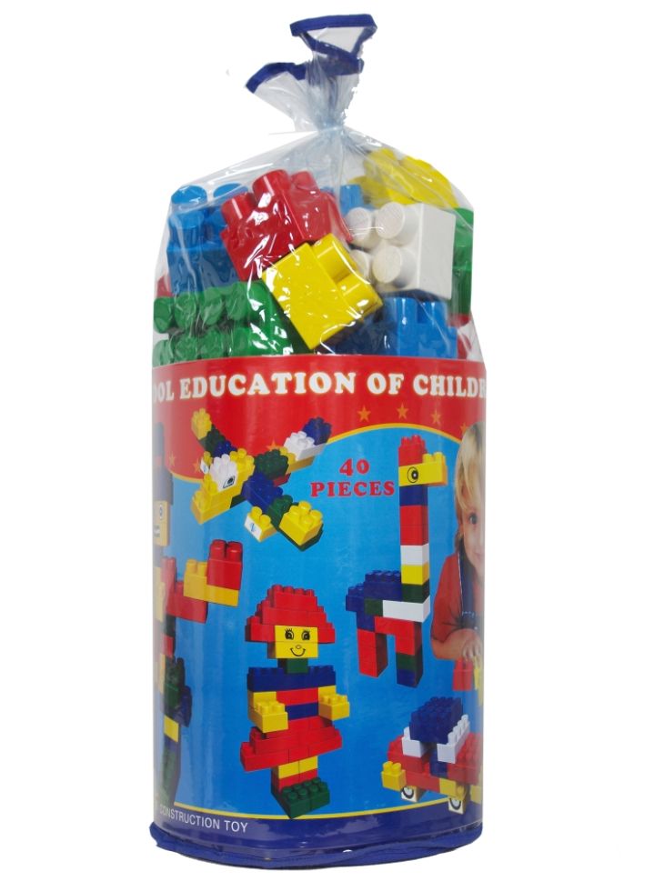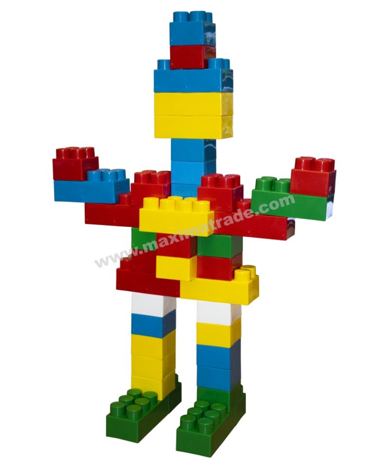Конструктор - строител, състоящ се от 44 едри пластмасови блокчета, събрани в здрава и удобна за прибиране чанта. Комплектът включва и лепенки за украса на направените фигури. Частите са едри и удобни за хващане за големи и малки деца. Сглобяват се лесно и без усилие. Игрите за „строене” стимулират въображението, пространственото мислене и концентрацията на детето. Блокчетата са в различни цветове, което помага на децата играейки да научат цветовете. Конструкторът е с тегло 1,800 кг и размери на опаковката 23х23х60 см. Предназначен е за деца над 3 години.