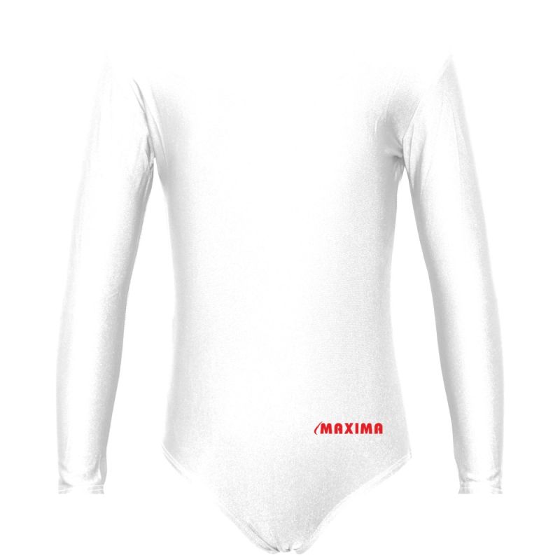 Детско трико с дълъг ръкав MAXIMA, Подходящо за гимнастика, балет и танци, Бяло, XL /40042007/