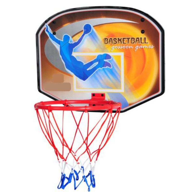 Баскетболно табло с кош за деца. За монтиране на стена, врата или друга стабилна повърхност. Комплектът включва мрежа, демонстрационна топка, помпа, както и необходимите елементи за монтаж. Игличката на помпата се намира в дръжката. Размери табло - 49x38 см. Вътрешен диаметър ринг - 25 см. Размери опаковка - 50х38х3 см. Тегло за комплект - 1.9 кг. Материал - MDF, метал, пластмаса.