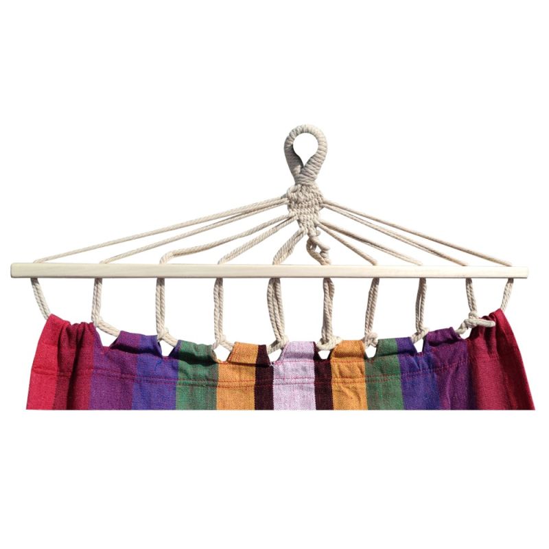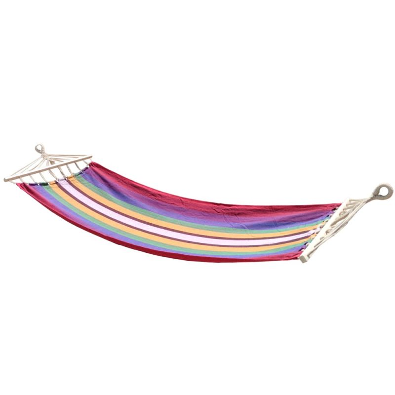 Хамак MAXIMA, 260х80 см. Дължина на платнището (от рейка до рейка) - 190 см. Дължина на хамака с въжетата - 260 см. Ширина - 80 см. Материал - памук, полиестер и дървесина. Дебелина въже - 5 мм. Максимално натоварване - 120 кг. Размери сгънат - 80 х Ф12 см. Тегло - 1.1 кг.