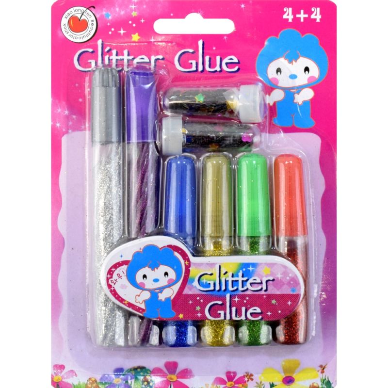 Комплектът съдържа 2 големи тубички лепило, 4 малки тубички лепило и две шишенца с фигурки за апликация - звезди и сърчица. Лепилото с брокат ще добави специален блестящ акцент на детските рисунки, апликации и картички. Подходящо за употреба у дома, в училища и детски градини. Размери опаковка - 15.5х11.5х2 см. Тегло за комплект - 70 г. Подходящ за деца над 5 години.
