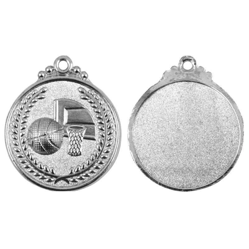 Медал за баскетбол MAXIMA, 5 см, С трикольорна лента, За второ място. Медалът разполага с трикольорна лента за окачване. На гърба може да се гравира текст или лого. Тегло за медал - 25 г. Материал - метал. Цената е за 1 медал.