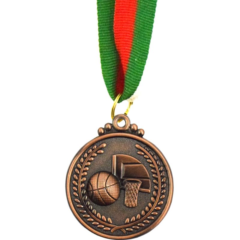 Медал за баскетбол MAXIMA, 5 см, С трикольорна лента, За трето място. Медалът разполага с трикольорна лента за окачване. На гърба може да се гравира текст или лого. Тегло за медал - 25 г. Материал - метал. Цената е за 1 медал.