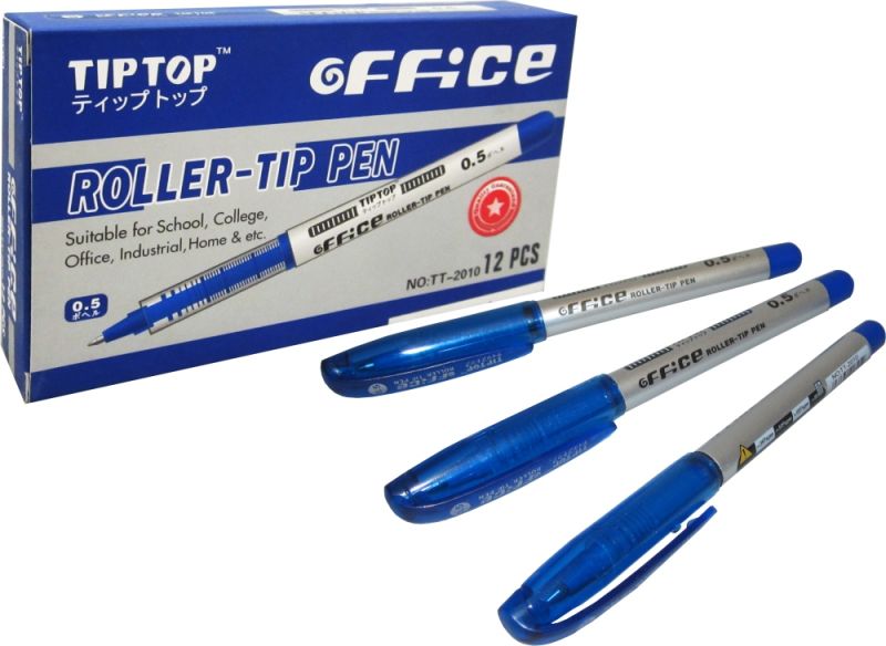 Гел химикалки Тip Тop. При този тип химикалки се използва мастило, в което пигментът се суспендира в гел на водна основа. Тъй като мастилото е гъсто, писането с него остава по-ясни следи в сравнение с останалите мастила. Химикалката е със син цвят мастило, връх 0.05см. И капачка с клипс. Цената е за бройка.