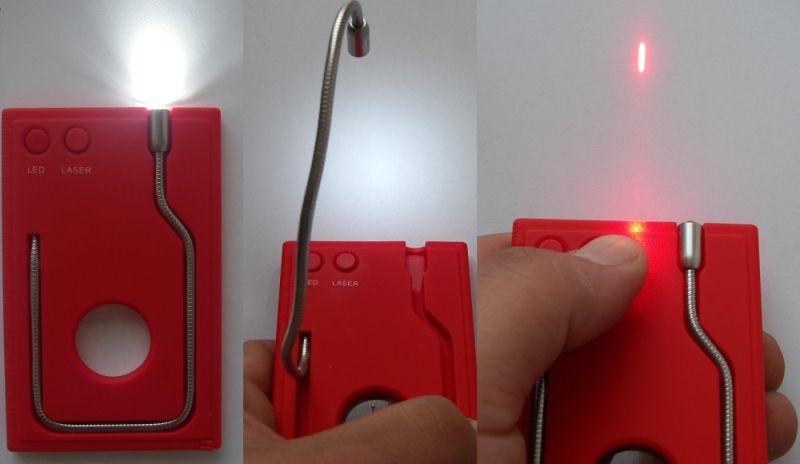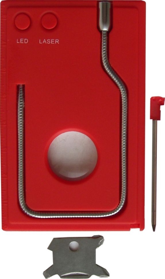 Лупа, фенерче, лазарна показалка, химикал, настолана лампа, линийка, отверка . Размери 90x55x5мм. Материал пластмаса.