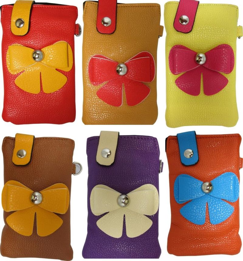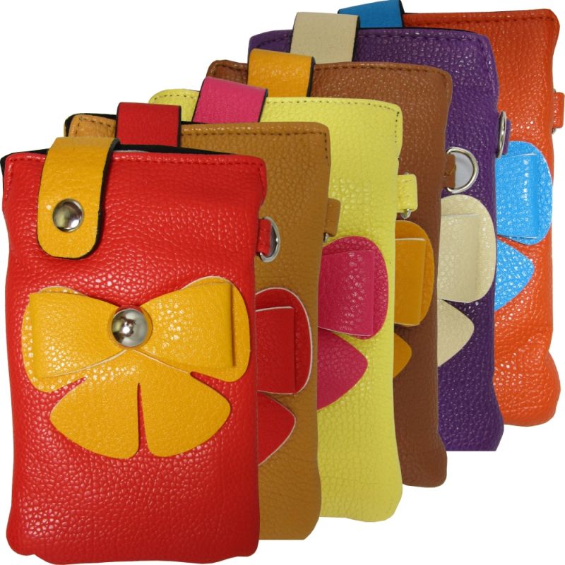 калъф за мобилен телефон с портмоне и връзка за ръка. Калъфът се закопчава посредством кожена лента с копче с магнит. Защитава от надраскване, мръсотия, отпечатъци, мазнини и други щети. Дизайнът на калъфа е в някoлко разновидности - светло жълт с розово цвете, охра с оранжево цвете, лилав с бяло цвете, червен с оранжево цвете, кафяв с оранжево цвете.