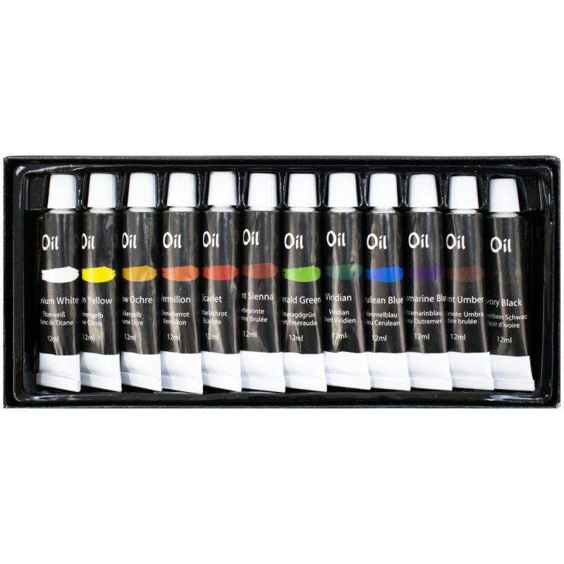 Маслени бои MAXIMA, 12 цвята, В туби. Подходящи за употреба у дома, в училища и детски градини. Произведени от висококачествени материали. Живи и ярки цветове, отлична покривна способност и висока плътност на цветовете. Нетоксични. Обем туба - 12 мл. Тегло за комплект - 250 г. Размери опаковка - 25х10.5х2 см.