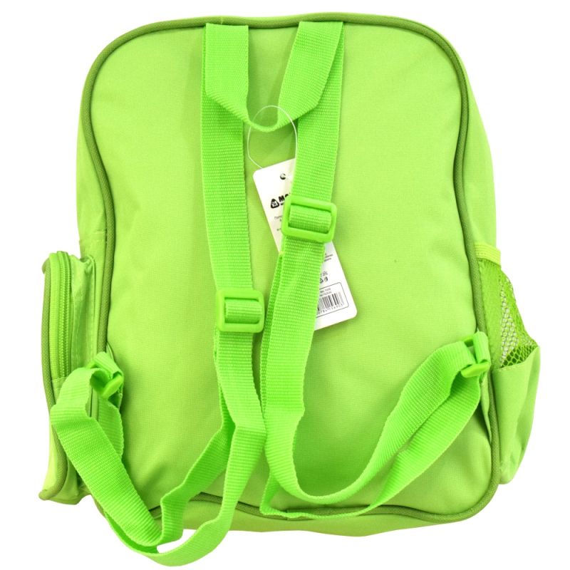 Детска раница, подходяща за детска градина. Раницата е с едно отделение и два странични джоба. Единият джоб е с цип, а вторият е с мрежа - подходящ за шише за вода. Материал - текстил /полиестер с пвц промазка/
