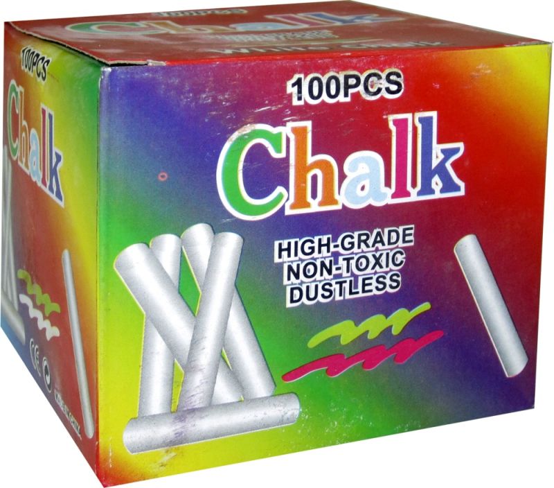 Бели тебешири 100 броя в кутия. За писане и рисуване върху различни повърхности - черни и зелени дъски, асфалт, бетон. Не отделят прах и лесно се изтриват от дъски. Тебеширите са с обла форма и размери - дължина 7 см, дебелина - 1 см. Размери на кутията - 9.5х9.5х7 см; Тегло - 410 г
