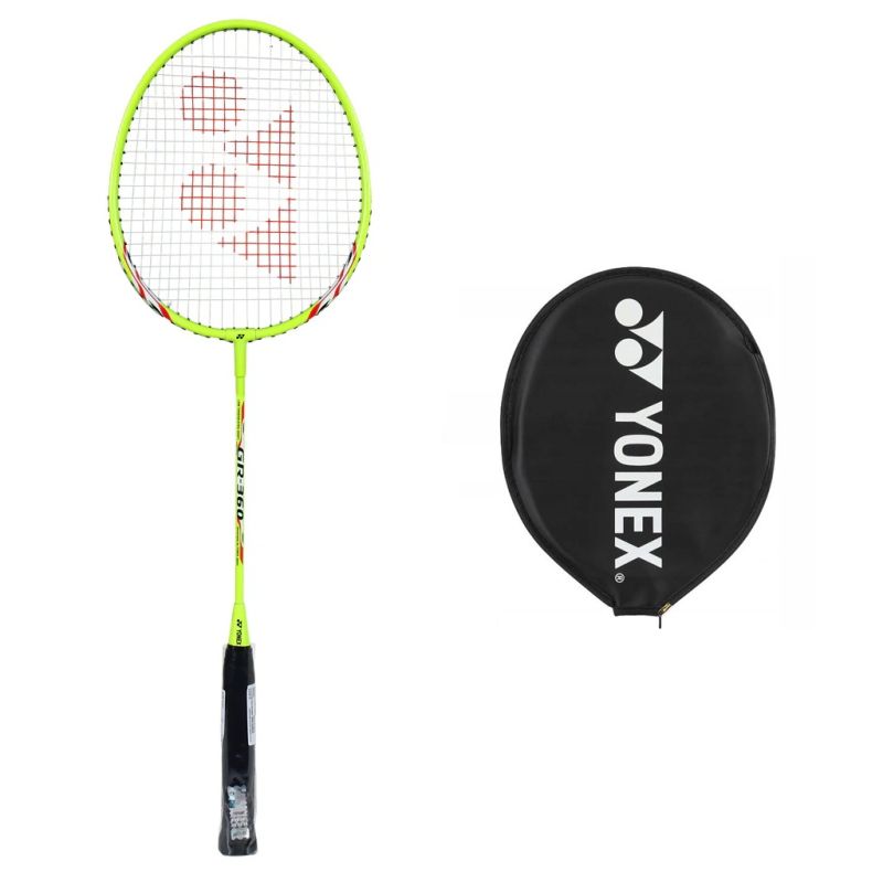 Ракета за бадминтон YONEX GR360, Електриково жълта. Конструкцията от стоманена дръжка с ниска степен на усукване, алуминиева глава и стандартна дължина я правят подходяща за начинаещи и любители, както и за употреба в училища. В комплекта е включен калъф за главата. Стил на игра - контрол. Баланс на ракетата - балансирана. Гъвкавост - ниска. Тегло - U / G4 (95 - 99 г). Размер дръжка - G4. Дължина ракета - 665 мм. Тегло с калъфа - 150 г.