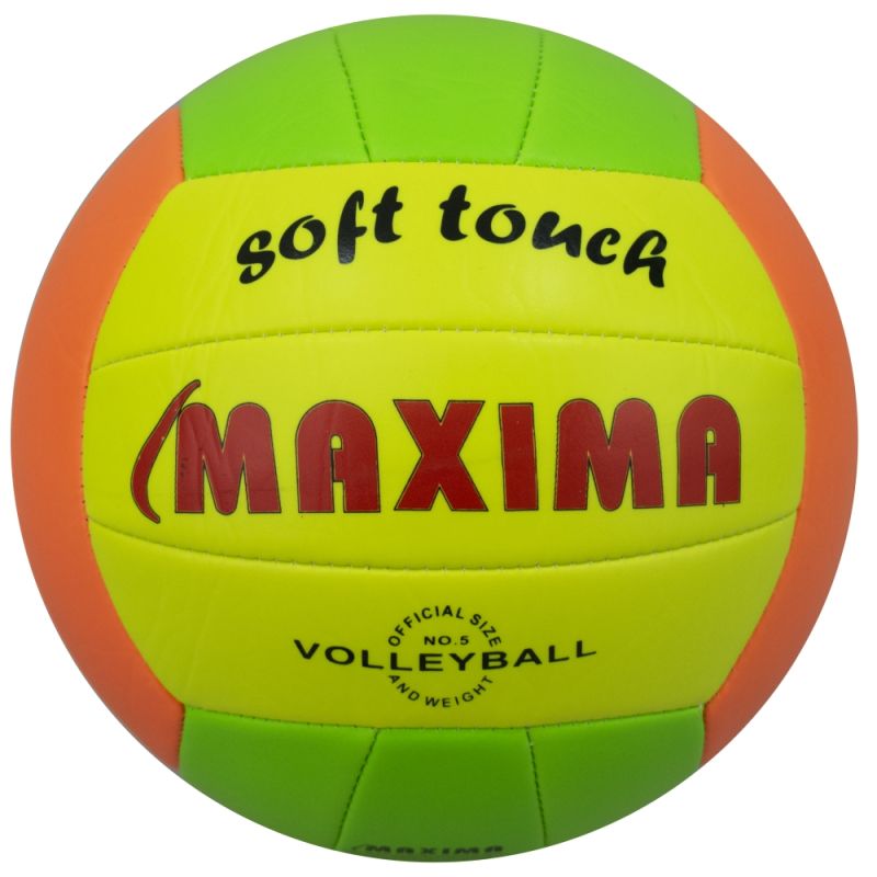 Топка за волейбол MAXIMA Soft touch. Машинно шита, изработена от материал с дебелина 2.8 мм. Съчетава по-голяма удряща повърхност с ниска скорост, за да получат младежите възможност да придобият увереност в уменията си за игра. Топката се препоръчва за тренировки и игра за деца и юноши. Подходяща за плажен волейбол. Размер - 5. Материал горен слой - PU кожа. Материал плондир - бутил каучук. Тегло - 260 - 280 г. Брой панели - 18.