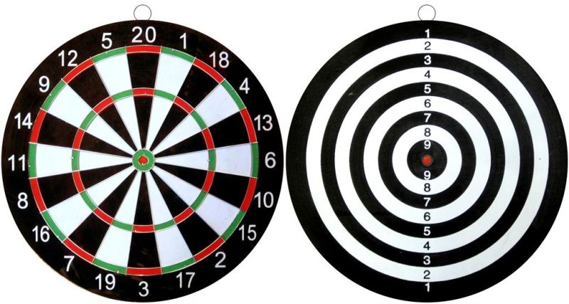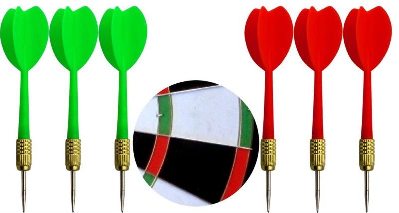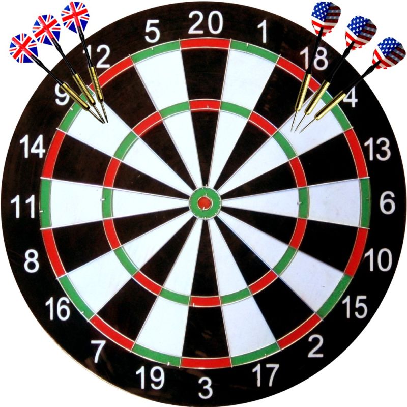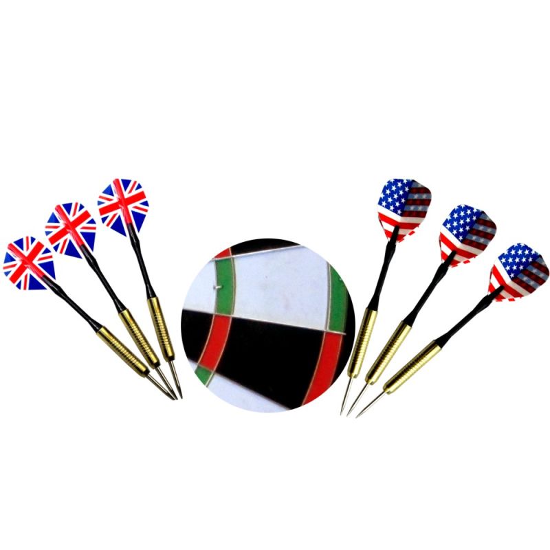 Двустранен дартс, 11.22 инча (28.5 см), С 6 стрели със стоманен връх. Подходящ за начинаещи, за първите Ви стъпки в дартса, както и за напреднали. Диаметър мишена - 11.22 инча (28.5 см). Дебелина мишена - 1 см. Дължина на стреличките - 15 см. Тегло за комплект - 680 г. Размери опаковка - 30х30х2 см. Материал - пресован картон, метал.