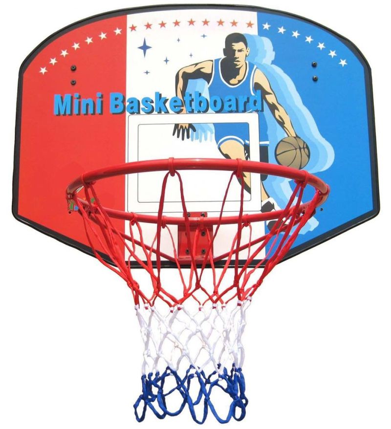 Баскетболно табло с кош за деца. За монтиране на стена, врата или друга стабилна повърхност /комплектът съдържа необходимите елементи за монтаж/. Комплектът включва мрежа и помпа. Игличката на помпата се намира във външния край на буталото. Размери на таблото - 80x61 см. Вътрешен диаметър на ринга - 42 см. Размери на опаковката - 81х63х6 см. Тегло за комплект - 5 кг. Материал - MDF, метал, пластмаса.