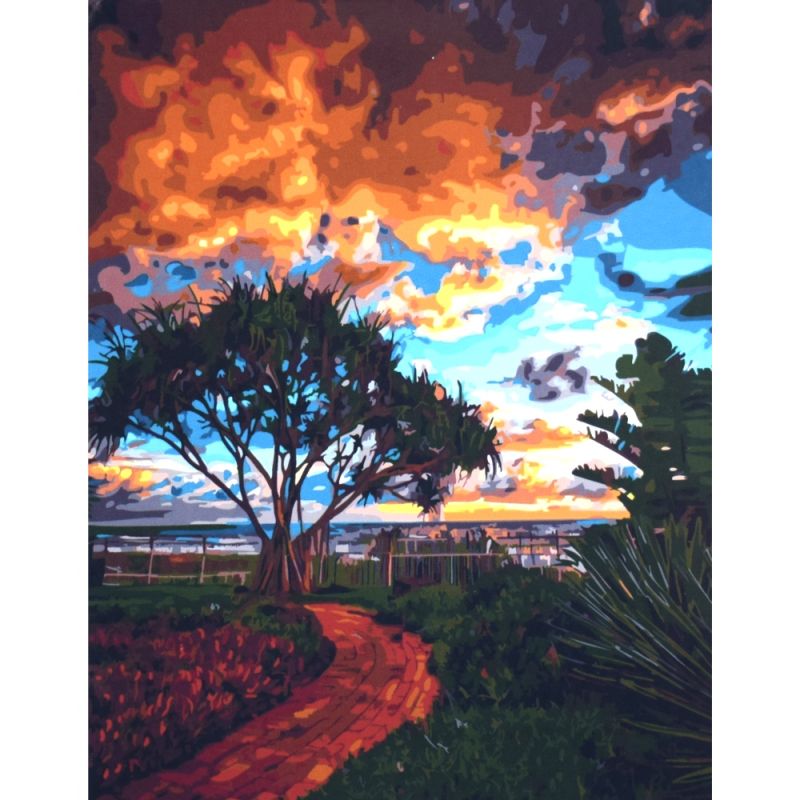 Комплект за рисуване по номера. Забавно занимание както за деца, така и за възрастни. Подобрява концентрацията, сръчността и координацията. Съдържа платно с дървена рамка и размери 50х40 см, акрилни бои, три четки (две обли и една плоска), номерирана схема, както и куки за закачане на готовата картина. Платното е с отпечатани контури и попълнени номера, съответстващи на цветовете (всяко бурканче с боя е номерирано). Комплектът е пакетиран в кутия с дръжка за удобно пренасяне. Подходящ за деца над 7 години. Тегло за комплект - 650 г. Размери кутия – 51х41х2 см.