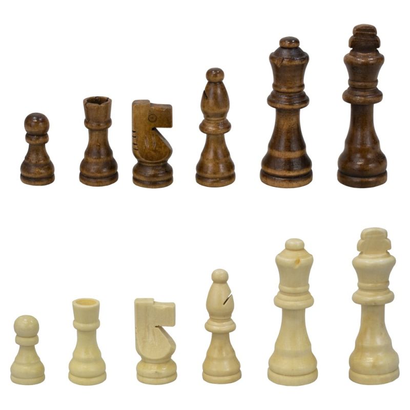 Шах с полиетиленово платно и дървени фигури MAXIMA. Платното се сгъва бързо и лесно, което прави комплекта компактен. Фигурите са с противоплъзгащи основи. Комплектът съдържа чанта за удобно съхранение и пренасяне. Размери платно - 35х35 см. Размер цар - 9 см. Размер пешка - 4 см. Материал платно - полиетилен. Материал фигури - дървесина. Тегло за комплект - 270 г.