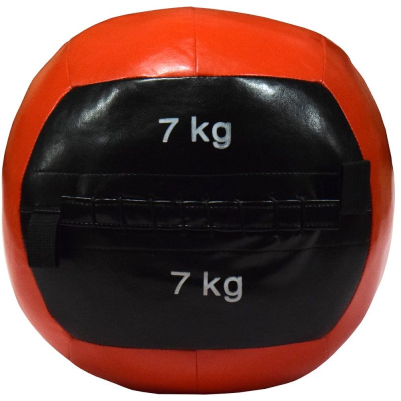 Мека медицинска топка Wall Ball 7 кг е предназначена за функционални и кросфит тренировки, обща физическа подготовка, както и за рехабилитация. С Wall Ball се изпълняват разнообразни балистични движения – хвърляния нагоре, напред, встрани и над рамо. Тези упражнения развиват експлозивната сила и бързината, координацията и мускулната сила, ловкостта и гъвкавостта. Това прави „стенната топка“ много полезна и необходима при кондиционната подготовка на спортистите. С топката могат да се изпълняват и физически упражнения за баланс и равновесие в бавно темпо. Топката е изработена от устойчива синтетична кожа със здрави шевове и не се деформира от подхвърляния и удари. Диаметър – 36 см; Тегло - 7 кг; Материал – PU. Този вид топка не е подходящ за хвърляне на разстояние и удряне в земята.