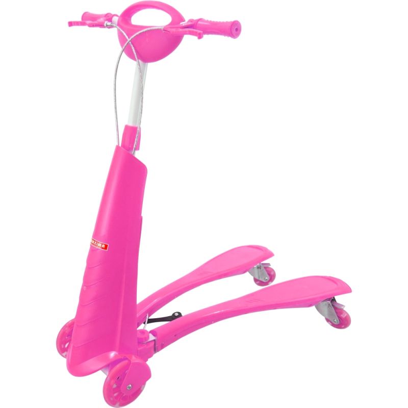 Детска тротинетка с 4 колела, която се кара по много различен и забавен начин - без да се стъпва на земята. Карането се осъществява с приплъзващи движения като при ски бягането или карането на кънки. Характеристики: -Регулируема височина на кормилото през 5 см - от 75 до 90 см; -2 ръчни спирачки<br>Колела с LED светлини; -Диаметър на предните колела - 12 см, диаметър на задните - 7 см; -Свободно движещи се задни колела за по-добра маневреност при завиване; -Забавен дизайн; -Максимално натоварване - 60кг. Размери на опаковката – 74х27х13 см; Тегло – 5 кг; Материал - ПВЦ, метал.