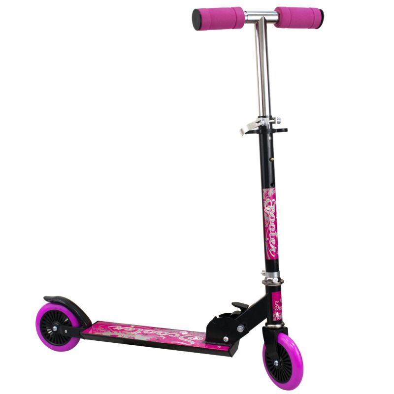 Тротинетка с 2 колела, Черен с розов, Сгъваема /20019402/