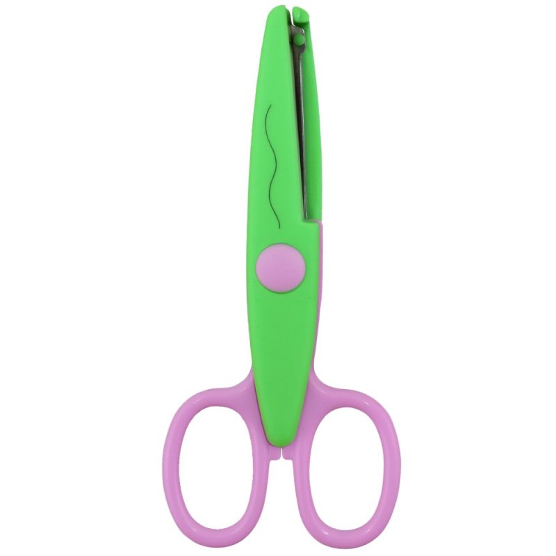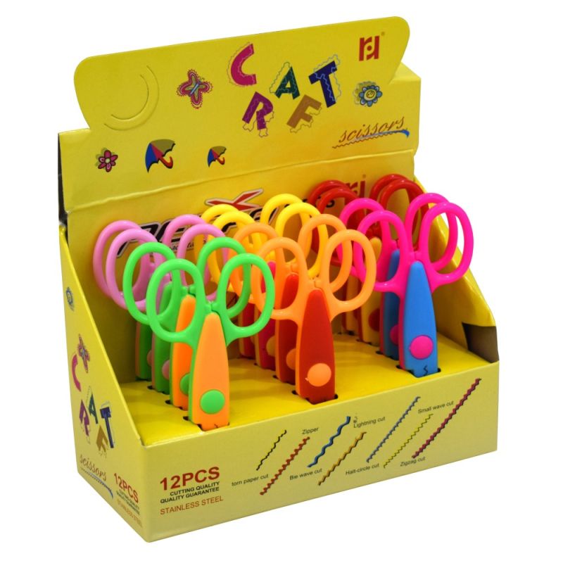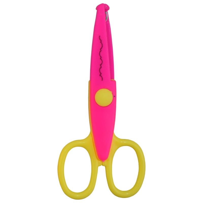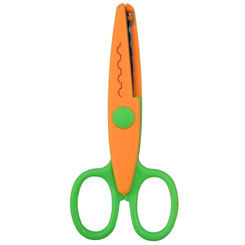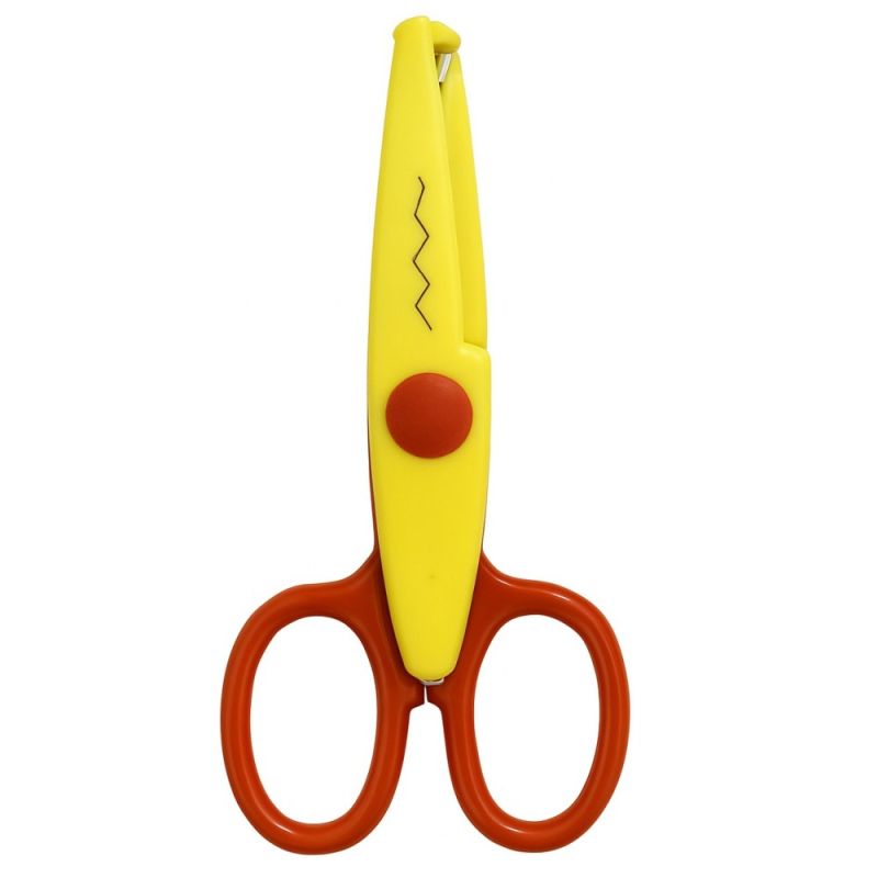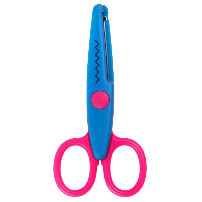 Ножица зиг-заг MAXIMA, 5.3 инча, 13.5 см, изработена от стомана и PVC, със защитено острие. Подходяща за употреба у дома, в училища и детски градини. Различни комбинации цветове, всяка от които с различен контур. Броя в кутия - 12. Цена - за 1 брой. Тегло за 1 брой - 20 г. Тегло за 1 кутия - 290 г. Материал - стомана, PVC. Размери кутия - 20х14х9 см.