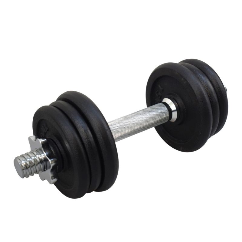 Дъмбел 10 кг MAXIMA, Железен. Подходящ за домашна употреба. Лесен за поддръжка. Позволява изпълнение на богат набор от упражнения, натоварващи различни групи мускули. Включва дръжка с две гайки. Четири диска от 1 кг и два диска от 1.5 кг. Отвор дискове - 30 мм. Гайка – ф30. Дебелина дръжка (лост) - 28 мм. Дължина дръжка (лост) – 36 см. Тегло - 10 кг. Дължина отсег за хващане дръжка за дъмбел – 12 см. Дебелина отсег за хващане дръжка за дъмбел - 30 мм. Тегло – 10 кг.