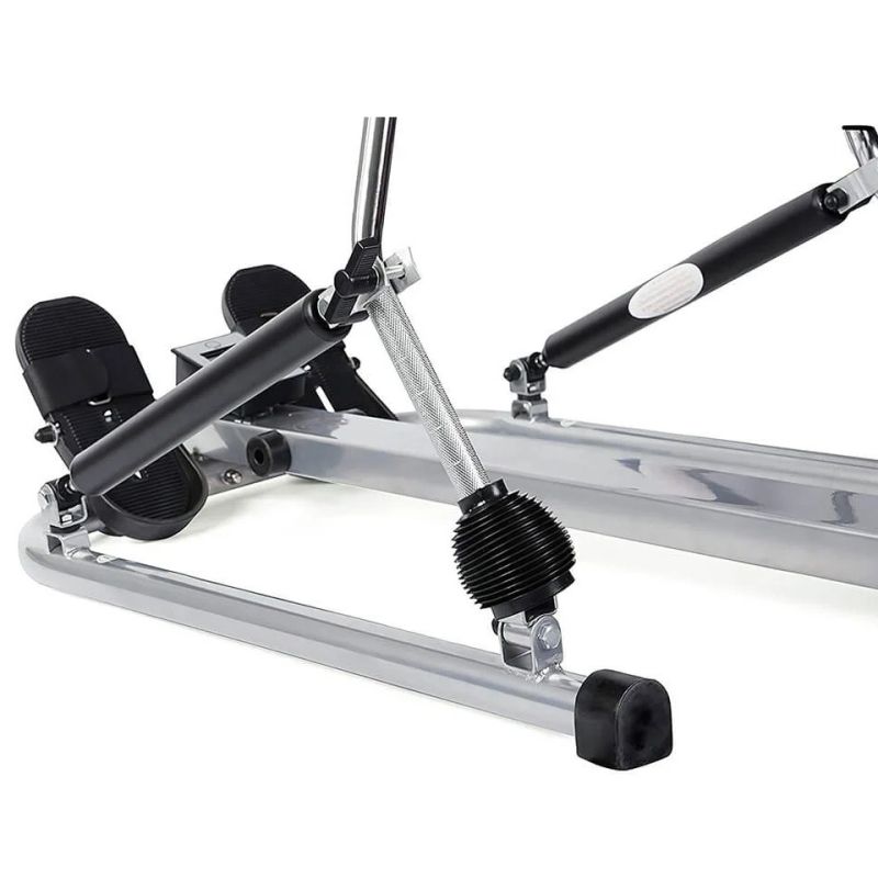 Гребният тренажор е уред за цялостна тренировка, който ефективно натоварва всички големи мускулни групи – ръце, гръб, крака и корем. Благодарение на механично-хидравличната система, той позволява разнообразие от упражнения и персонализиране на интензивността според индивидуалните цели и физическа подготовка. Уредът имитира естествените движения при гребане. Това осигурява изгаряне на калории, издръжливост и подобрява координацията и тонуса на цялото тяло. Вграден LCD дисплей показва всички основни параметри – време, брой дърпания, разстояние и изгорени калории, като функцията „сканиране“ позволява да се следят показателите в реално време. Максимална товароносимост до 100 кг и препоръчителна височина на трениращия до 190 см. Размери - 120 x 65 x 17 см. Размер опаковка - 115.7 х 33.2 х 14.7 см. Тегло с опаковка – 14.7 кг. Тегло на уреда – 13.3 кг. Максимално натоварване – 100 кг.