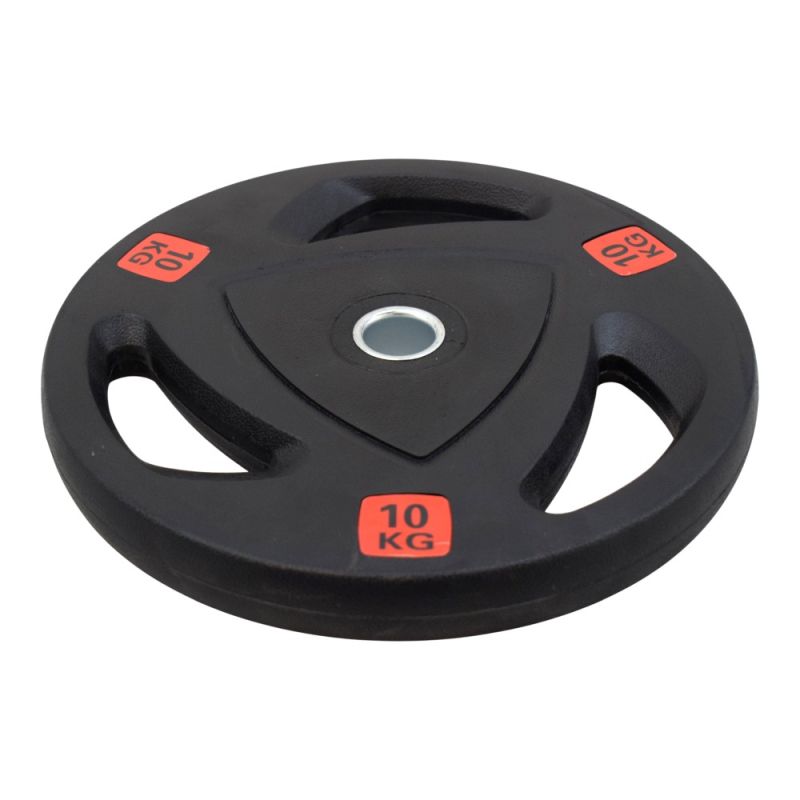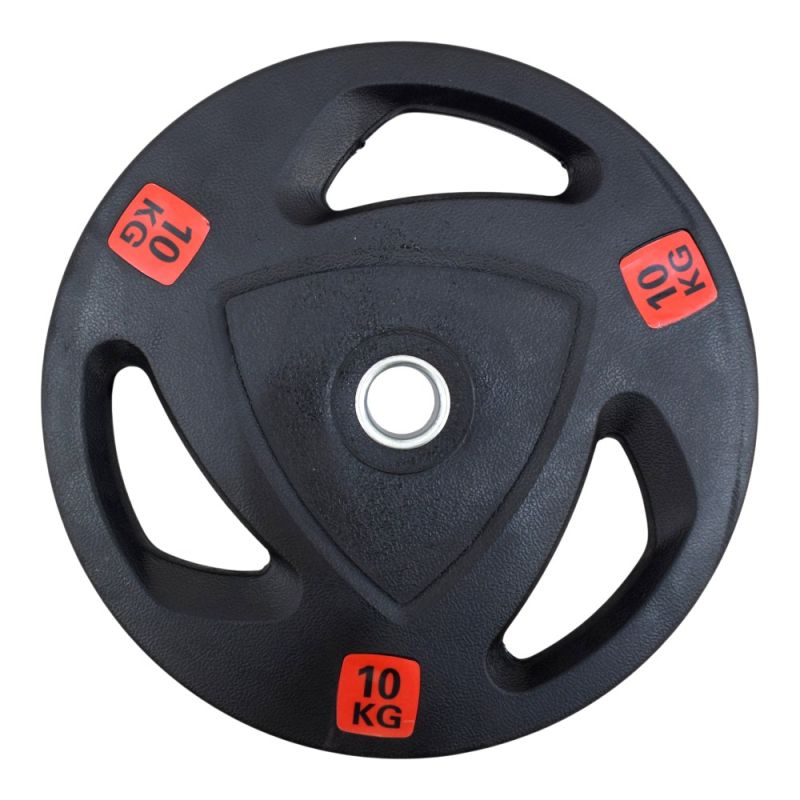 Диск за щанга MAXIMA, 10 кг, гумиран, с метален пръстен и дръжки. Подходящ за домашна употреба. Лесен за поддръжка. Диаметър на отвора 30 мм, което го прави подходящ за лостове с дебелина от 25 до 28 мм. Размери диск - Ф32x4 см. Цената е за един диск.