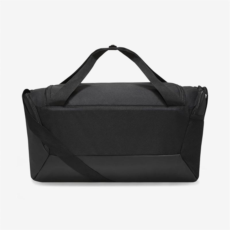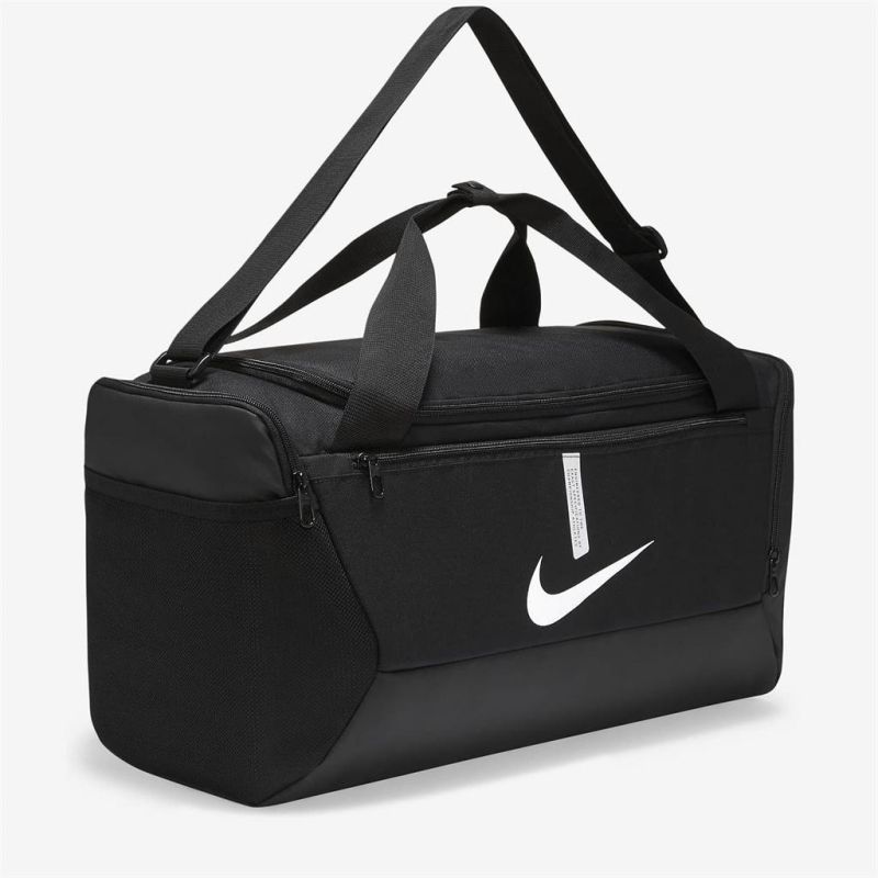 Спортен сак NIKE academy team, Черен, 41 л с твърдо дъно от здрава и плътна текстилна материя. Подходящ е както за тренировка, така и за пътуване. С регулируема презрамката за рамо и две къси дръжки, което го прави подходящ за носене в ръка. Сакът е със здрава основа с покритие, което предпазва от влага. Разполага с: Едно основно отделение; Странично отделение с цип за мокро/сухо или обувки. Малък вътрешен джоб с цип; Преден джоб с цип; Страничен джоб с мрежа; Размери - 53х25хH28 см. Обем - 41 л. Минимална дължина на презрамката - 65 см. Максимална дължина на презрамката - 132 см. Материал – полиестер. Тегло - 500 г. Цвят – Черен.