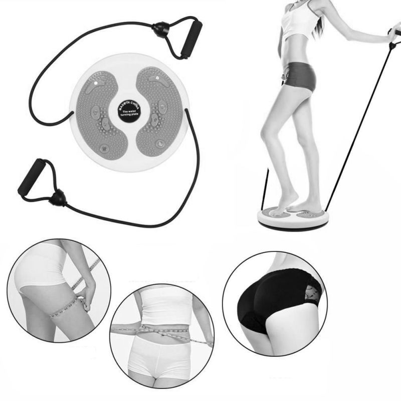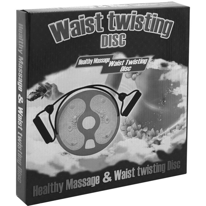 Дискът за въртене е уред, подходящ за тренировка чрез въртеливи движения. Комбинацията с ластици е за тренировка и на горната част на тялото – рамене, бицепс, трицепс. Упражненията с диска помагат за изгаряне на излишните мазнини и оформяне на силуета в областта на талията, ханша, ръцете, раменете и гърдите. Масажиращата повърхност с вградени магнити стимулира акупунктурните точки по ходилата, подобрява кръвообращението и влияе благотворно върху целия организъм. Дискът за въртене е компактен, лек и удобен, което позволява тренировки върху ограничено пространство в домашни условия или в офиса. Диаметър диск - 28 см. Дебелина - 3 см. Дължина на ластиците - 60 см (неразпънати). Максимално натоварване - 70 кг. Тегло нето - 750 г. Тегло бруто - 850 г. Размери кутия - 31.5х29х4.5 см.