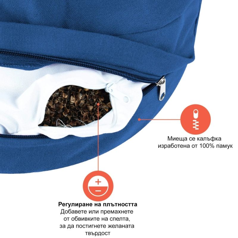 Възглавница за медитация полумесец (полузафу) MAXIMA, 40x26x15 см, Син /30008203/