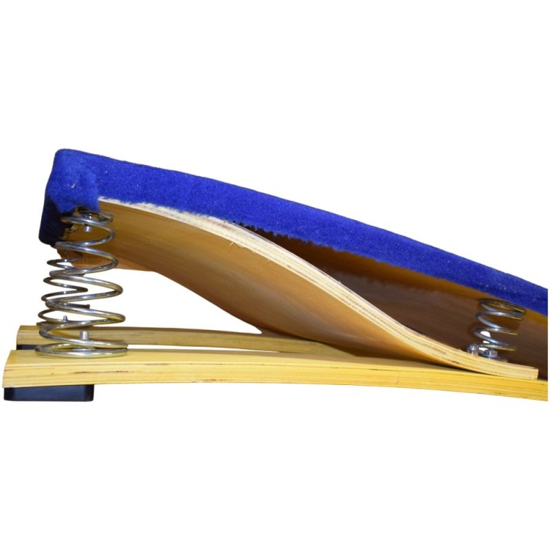 Гимнастически трамплин от слепена дървесина, предназначен за упражнения с отскок, развитие на координация, баланс и обща физическа подготовка. Подходящ е за използване в училища, спортни зали и тренировъчни центрове. Здравата и стабилна конструкция осигурява равномерен и контролиран отскок, а противоплъзгащата основа гарантира безопасност по време на тренировка и предпазва подовата настилка от нараняване. Материал – дървесина. Тегло нето - 17. Тегло бруто - 18. Размери – 121х60х22 см. Размери кашон -122х62х23 см.