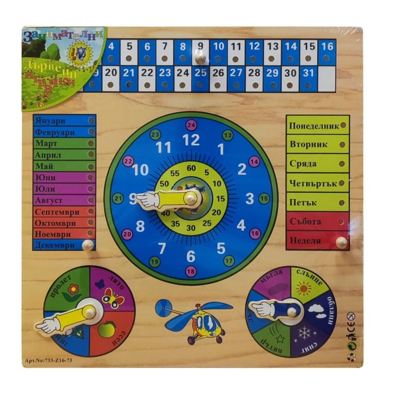 Дървен пъзел - календар с часовник на български език /270179/
