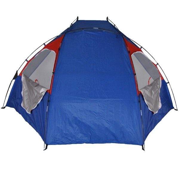 Плажна палатка (сенник) с дъно, основа трапец 270х120 см, височина 140см. Изработена от водоустойчив полиестер с 3000 мм воден стълб и UV защитен слой Rf +86. Подлепени шевове. Осигурява защита от слънце и вятър за трима възрастни или няколко деца. Подходяща за плаж, пикници сред природата или риболов. Екстри - вентлационни мрежести панели против насекоми, удобни джобове за съхранение на дребни вещи от вътрешната страна. Бързо и лесно сглобяване - обтегачите се закачат към покривалото с пластмасови скобички. Комплектът съдържа чанта за удобно съхранение и пренасяне на палатката. Тегло на палатката в чантата - 1500 г; Размери на чантата - 60хФ12см; Обтегачи от фибростъкло с диаметър 7.9мм.
