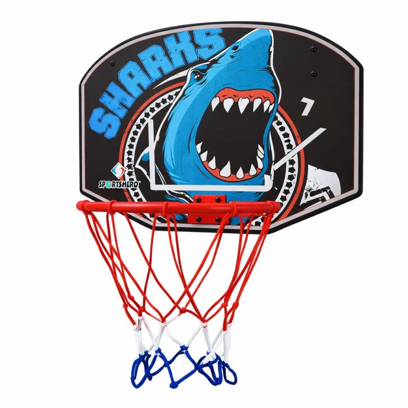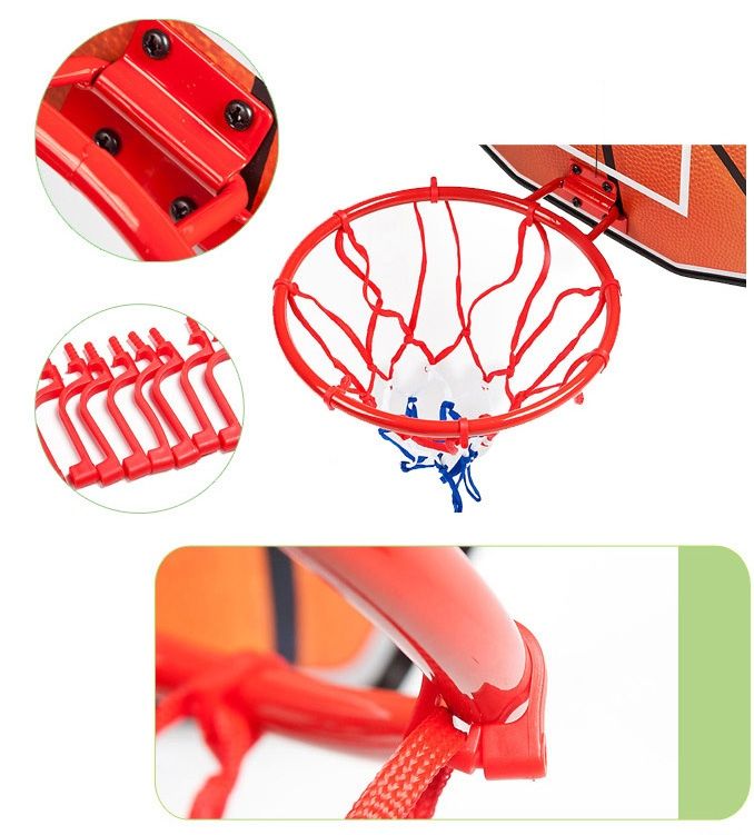 Баскетболно табло с кош за деца. За монтиране на стена, врата или друга стабилна повърхност. Комплектът включва мрежа, демонстрационна топка, помпа, както и необходимите елементи за монтаж. Игличката на помпата се намира в дръжката. Размери табло - 49x38 см. Вътрешен диаметър ринг - 25 см. Размери опаковка - 50х38х3 см. Тегло за комплект - 1.9 кг. Материал - MDF, метал, пластмаса.